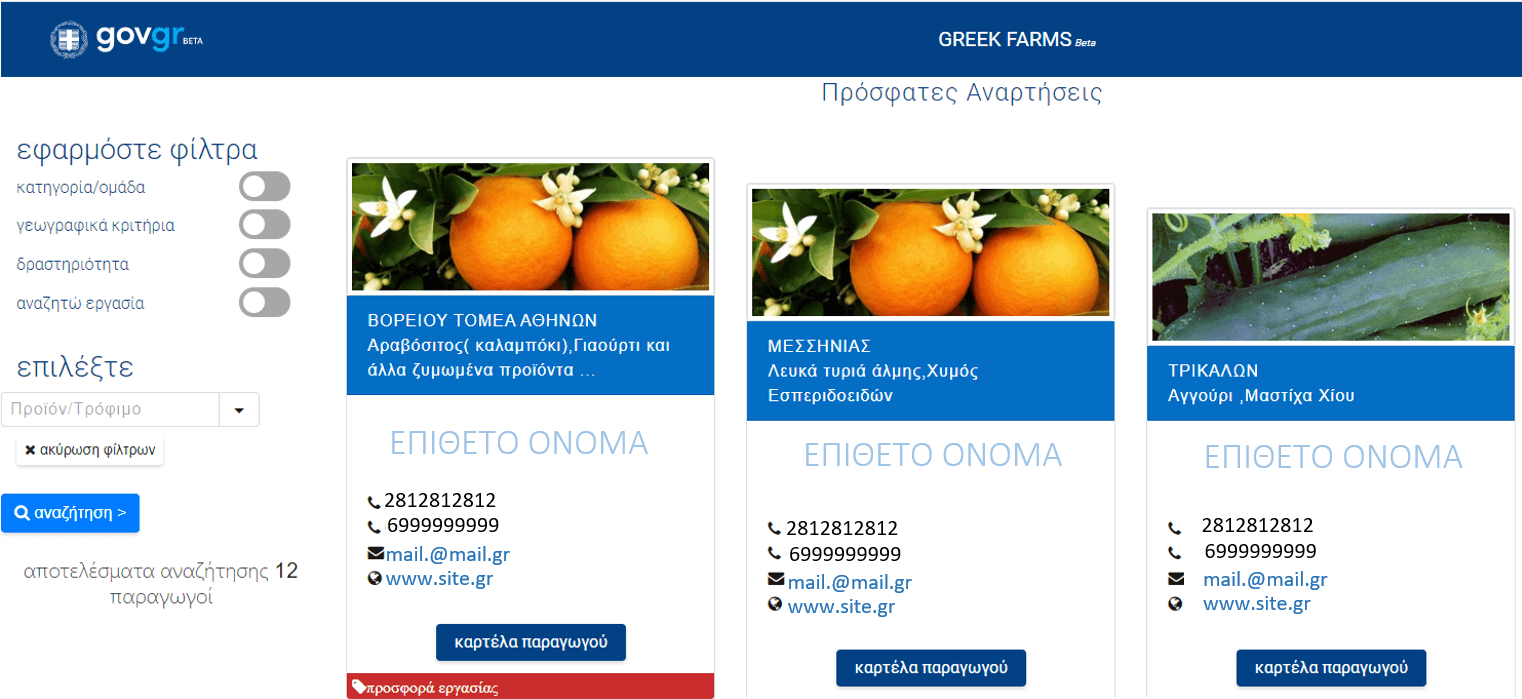 Βρείτε εύκολα τους Έλληνες παραγωγούς και ενημερωθείτε για τα προϊόντα τους για να κάνετε απευθείας τις αγορές σας. Δεν χρειάζεται εγγραφή για να μπείτε στην υπηρεσία. Θα έχετε πρόσβαση στις πληροφορίες εκείνων των παραγωγών που έχουν επιλέξει να απευθυνθούν και στον τελικό καταναλωτή.