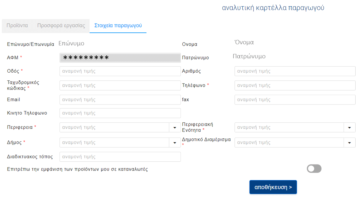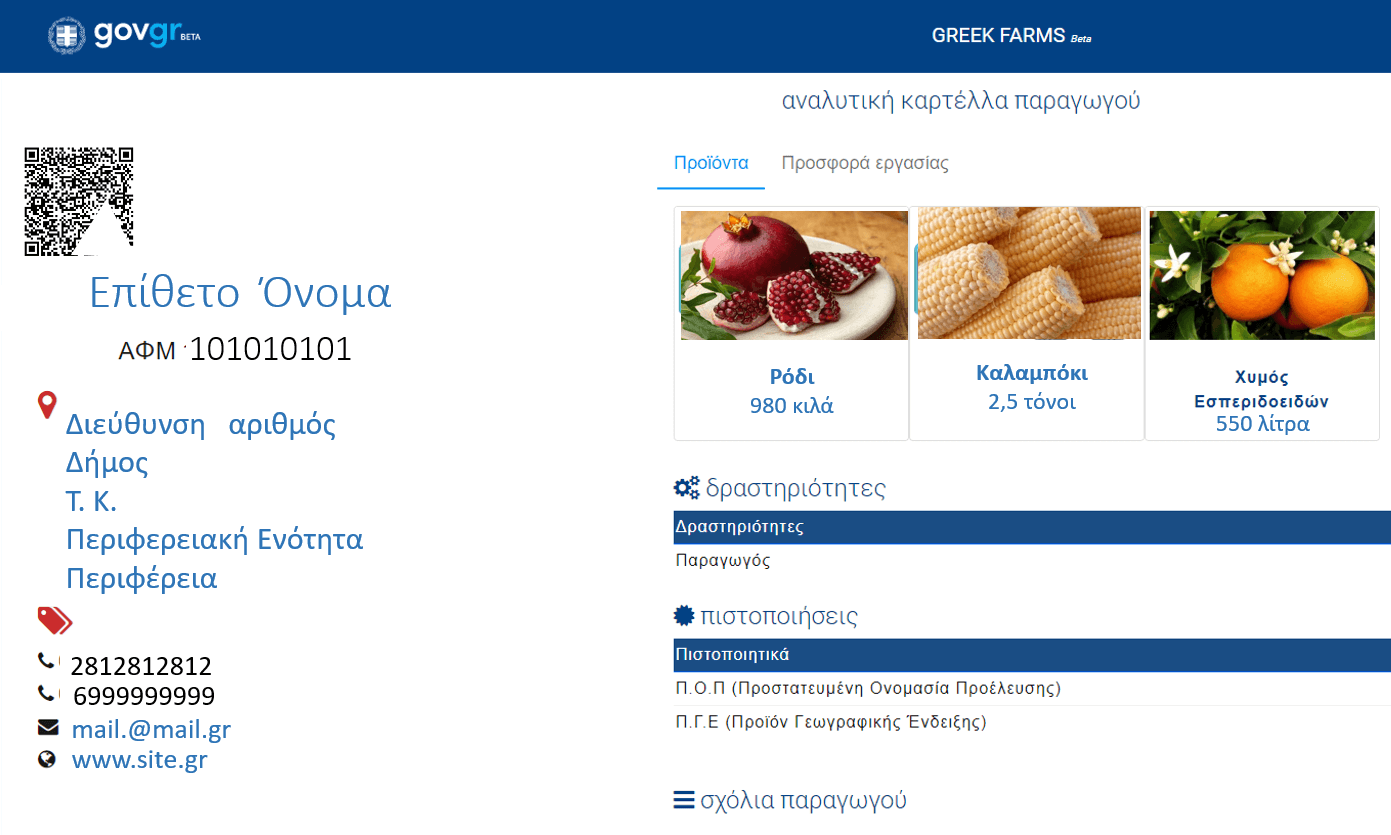 Παραγωγός. Αφορά Αγρότες, Κτηνοτρόφους, Αλιείς, Συνεταιρισμούς ή ομάδες παραγωγών.