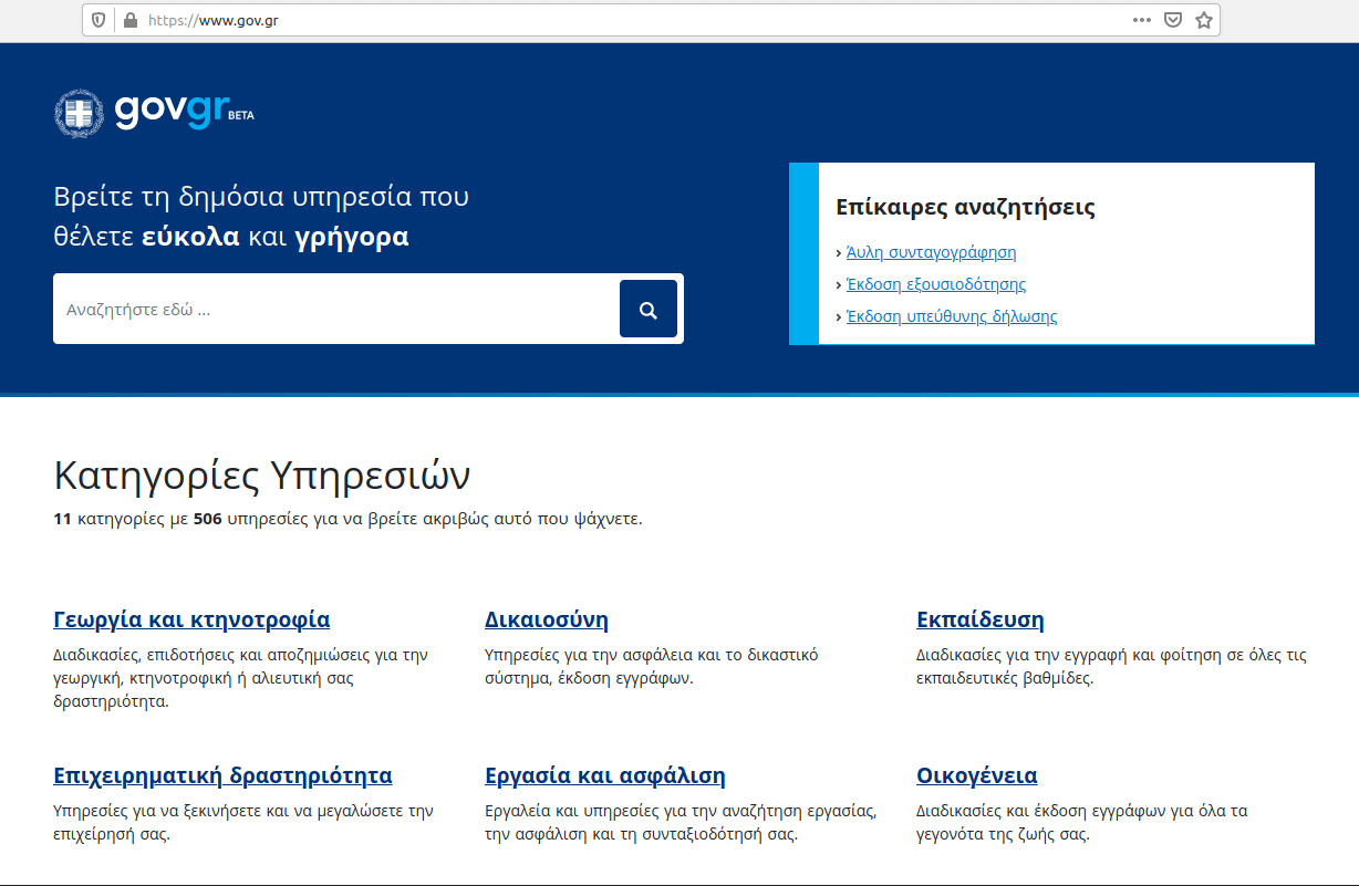 Α) Στην Ενιαία Ψηφιακή Πύλη Gov.gr