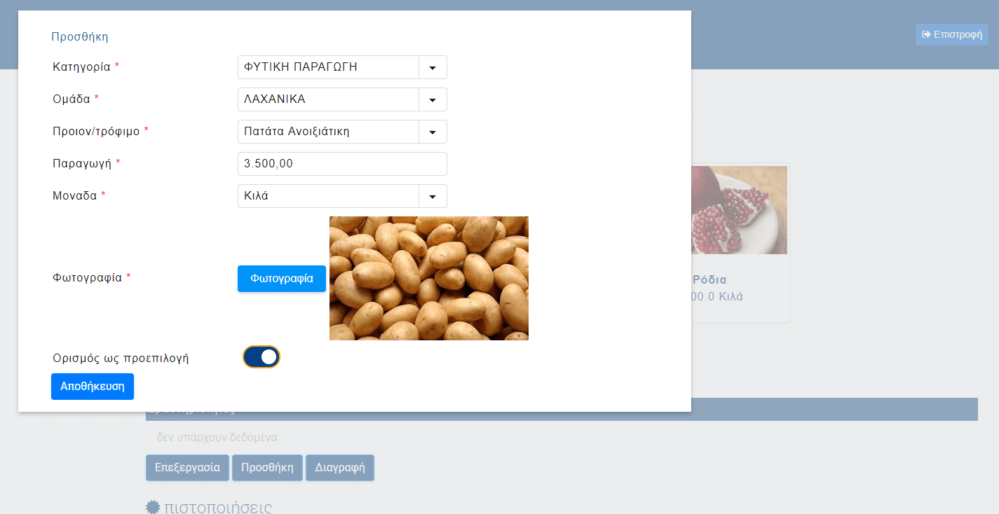 Αναζήτηση διαθέσιμης παραγωγής για καταναλωτές