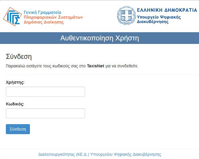 Ο σύνδεσμος σας μεταφέρει στην εισαγωγική σελίδα της υπηρεσίας, στην οποία επίσης παρουσιάζονται οι ρόλοι με τους οποίους μπορεί να πραγματοποιηθεί σύνδεση στην ψηφιακή υπηρεσία. Οι βασικοί διαθέσιμοι ρόλοι είναι: