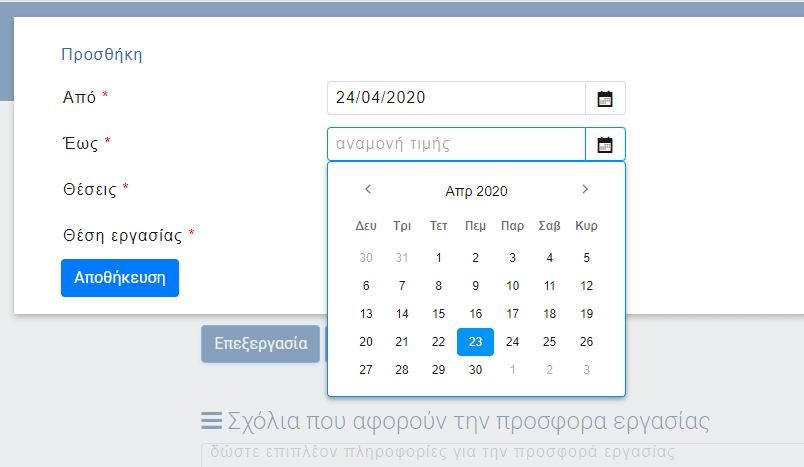 Καταχώρηση διαθέσιμης παραγωγής και θέσεων εργασίας